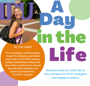 That’s why we’re inviting you to follow HPU senior Julia Segalla through a day in her life on HPU’s campus! The following pages provide a glimpse into why students really love living and learning at HPU.