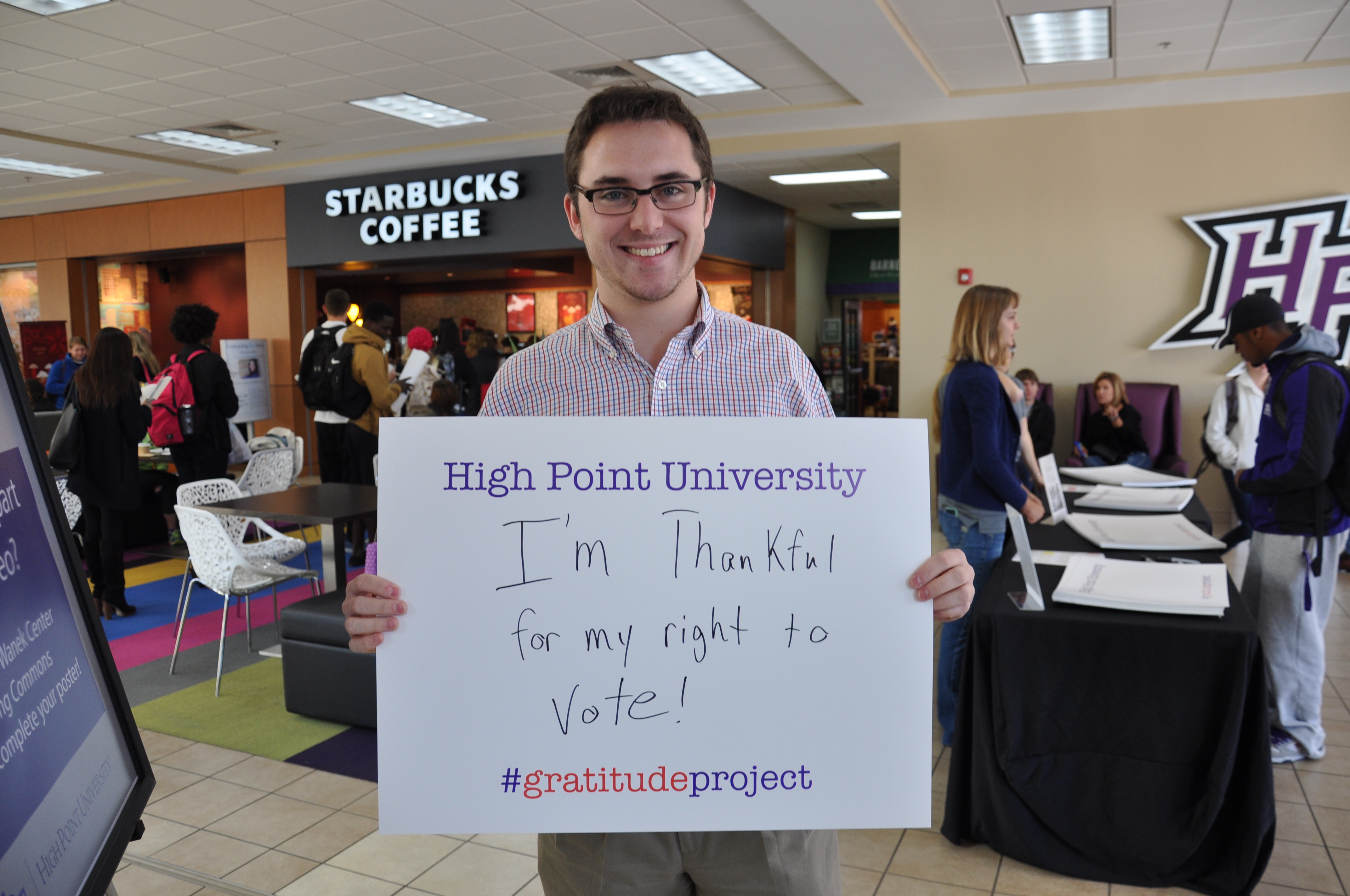 HIGH POINT, N.C., Nov. 18, 2013 – High Point University students took time to give thanks during “The Gratitude Project,” a way for them to document their blessings this Thanksgiving season.