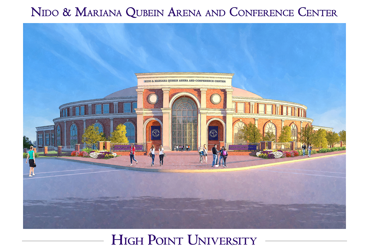The Qubein Arena and Conference Center will also serve as a venue for major events, speakers, concerts, entertainment and other large gatherings and recreational activities. It will seat 4,500 spectators and include suites, locker rooms, staff offices, concession stands, a merchandising area, media suite, film room, press conference room, weight room, athletic training room, hospitality area, high tech audio and video equipment, ticket office and practice gym.