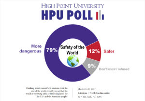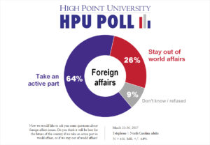 HIGH POINT, N.C., April 7, 2017 – The new High Point University Poll finds that majorities of North Carolinians support the U.S. taking an active part in foreign affairs, consider the world increasingly dangerous, and say that economic globalization is mostly good for the United States despite some concerns about its effects on job security.