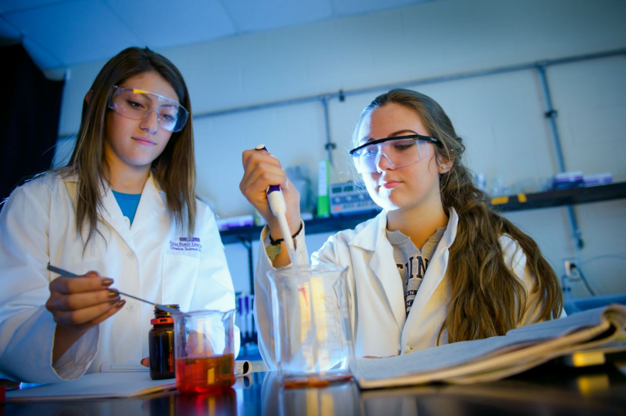 Then there are scientific research labs at HPU, where undergraduate science students are focusing on projects such as examining molecules that could potentially be used against Methicillin-resistant S. aureus (MRSA), the adaptive function of the Christmas fern, gene mutations linked to breast cancer, and, in collaboration with the Mariana H. Qubein Arboretum & Botanical Gardens on campus, creating a Veronia breeding program to produce plants that are both aesthetically pleasing and ecologically friendly. Some of these projects also include local high school students thanks to the Draelos Scholars for Science Program.
