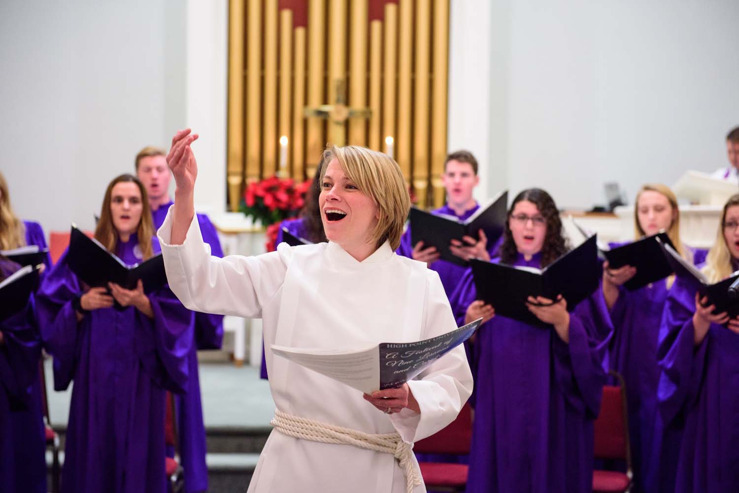 Students, faculty, staff and residents of High Point delivered readings from scripture between the singing of carols throughout the evening. Several members of the Chapel Choir took turns leading the congregation in the carols.