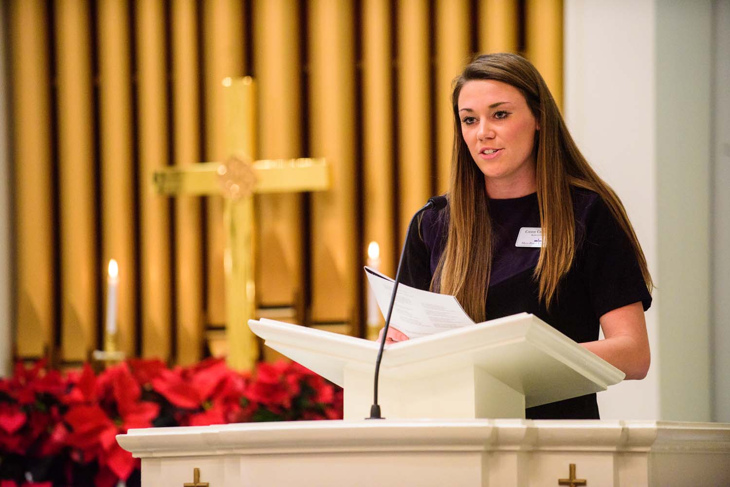 “It is a profound service where we simply let scripture and song bring to life the Christmas message of the Prince of Peace, the one brings light into our lives – a light that shines in the darkness and the darkness does not overcome it,” said Rev. Preston Davis, minister to the university. “I’m so very proud of the student leaders. Amid their hectic college schedules and responsibilities at semester’s end, they bring us to the heart of the season.”