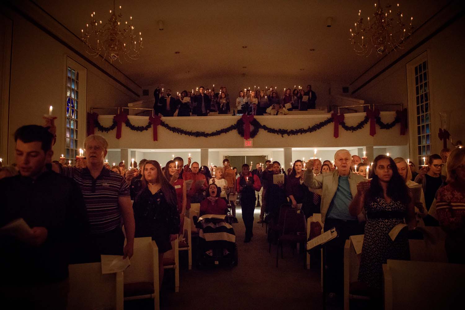 HIGH POINT, N.C., Nov. 30, 2017 –The light of nearly 350 candles held by members of the High Point University community filled Hayworth Chapel on Nov. 29th during the “Lessons and Carols” Candlelight Service. The annual event is a special time of sharing the Christmas story through readings and songs.