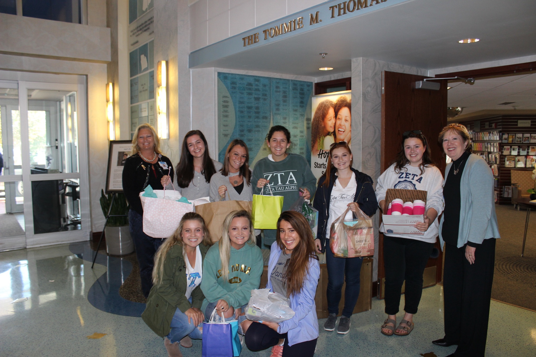 The items included mints, tissues, lip balm, body lotion, scarves, magazines and adult coloring books and colored pencils. ZTA sisters collected these items throughout the month of October, which is Breast Cancer Education and Awareness month, and donated them at the end of the month when they paid a visit to the hospital.