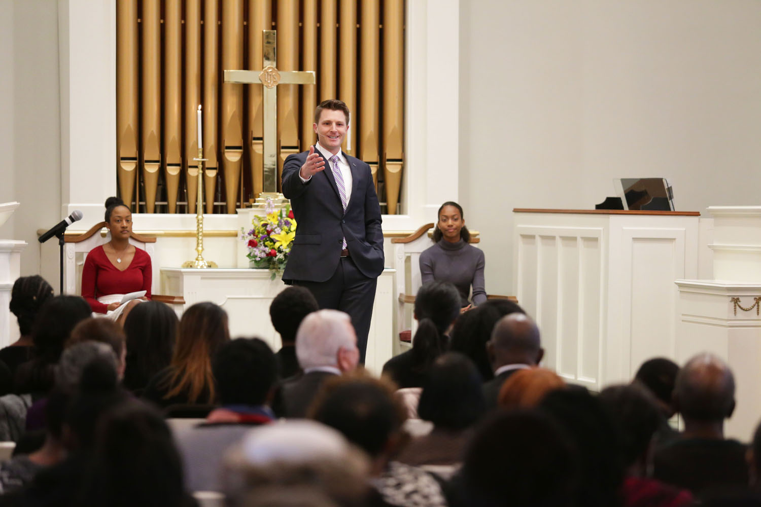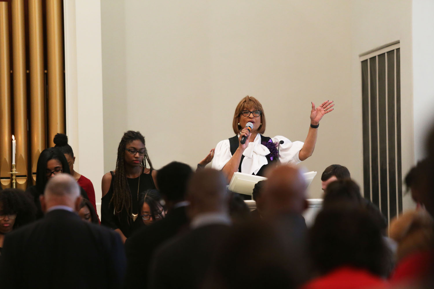 “Audacity is believing that you have something to offer that no one has yet given,” McKenzie said during her sermon in the Hayworth Chapel, with a full audience who were often moved to their feet while the energetic bishop spoke during what she called “Praise God” moments.