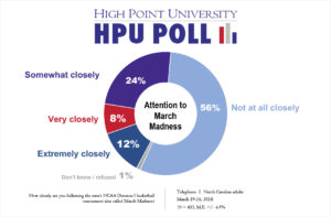 HIGH POINT, N.C., March 29, 2018 – A High Point University Poll finds that North Carolinians overall may not be following March Madness very closely this year, and a majority of them say that college athletes that bring in a lot of money to their schools should not be paid to play.
