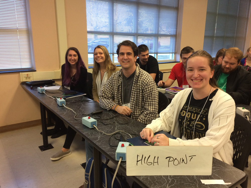 Two HPU mathematics majors won awards for top undergraduate presentations at the Southeastern Section meeting of the Mathematical Association of America. Joanna Fass won an award for her presentation “MatrixToe: 1s and 0s battle for domination,” research mentored by Dr. Adam Graham-Squire. Isaac Shore won an award for his presentation “Disease spread on networks,” research mentored by Dr. Laurie Zack. Students Alexis Newton and Sarah Poiani also attended the meeting and teamed up with Fass and Shore for a math jeopardy competition.