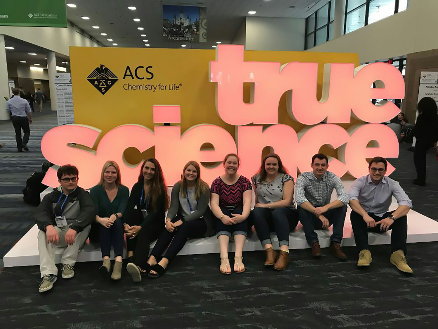 Students and faculty from the Department of Chemistry at HPU participated in the 255th American Chemical Society National Meeting in New Orleans. Rebecca Ulrich and Kyra Gillard gave oral presentations discussing their research on molecules that disarm antibiotic resistant bacteria. Nick Cutrona, Robert Glass, Kaylee Campbell, Lauren Pferdmenges, Kaitlyn Griffith and Riccardo De Cataldo each gave poster presentations on topics including the synthesis of novel compounds to combat MRSA, polymer chemistry, and the use of biophysical techniques to study biological systems. Faculty members Dr. Meghan Blackledge, Dr. Pamela Lundin, Dr. Keir Fogarty and Dr. Heather Miller mentored the projects. In addition to the student presentations, Miller and Fogarty gave talks on their innovative pedagogical work at HPU, which focuses on peer-mediated learning and construction of hands-on models as educational tools in the chemistry curriculum. The students were generously supported by HPU and were also awarded travel grants from the Central North Carolina chapter of the American Chemical Society. Ulrich also received a prestigious travel grant from the national Division of Organic Chemistry.
