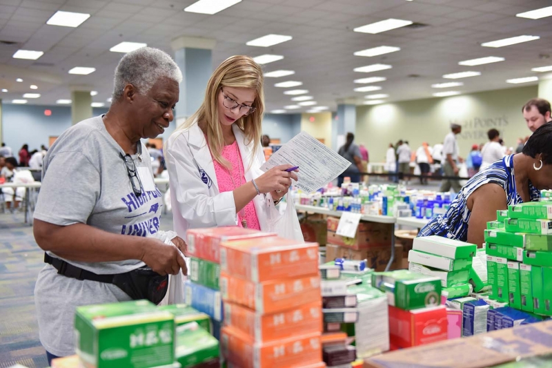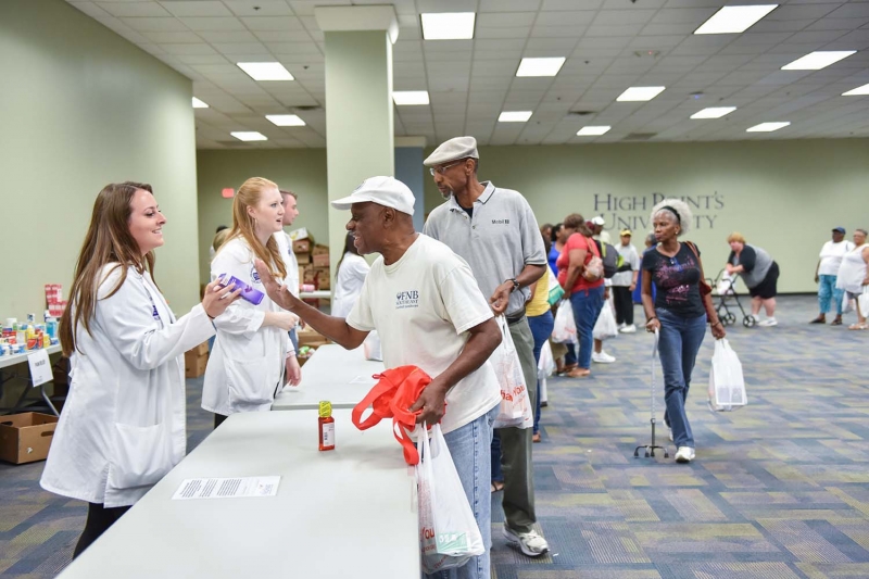 HIGH POINT, N.C., Sept. 6, 2018 – NC MedAssist, High Point University’s Fred Wilson School of Pharmacy, the city of High Point, United Way of Greater High Point and High Point Seventh-Day Adventist Church all came together on Sept. 6 to provide the community with free over-the-counter medicines and health screenings. The event was held in the High Point University Community Center.