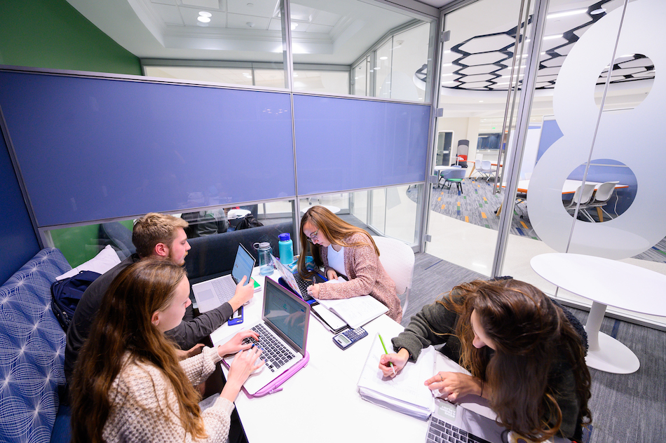 HPU’s newest academic building provides an innovative environment and the inspiration needed to reach your highest potential. Whether it’s tabletops found at the base of the 40-foot DNA sculpture that anchors Congdon Hall’s lobby, or a comfortable seat overlooking the building’s state-of-the-art biomechanics lab, you’ll find the brightly lit, modern learning environment welcoming during long study hours.