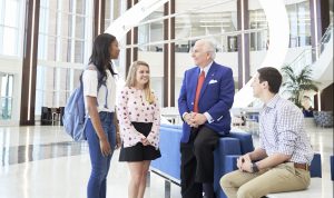 The library on the first floor of the Qubein School of Communication is another alternative. You can cozy up next to the fireplace or claim one of the solid oak tables. Upstairs, there are a few tables and chairs on the second floor lobby that offer a great vantage point of the Wilson School of Commerce.