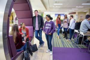 With a 24/5 schedule and extended weekend hours, Smith Library is a great resource for our students. With four floors of space and access to 250,000 physical books, 150,000 streaming videos, and 850,000 eBooks, the library and its resources are the place to read up on a subject. Need help with a research topic or with writing a paper? Librarians are available at all hours that the library is open to help you with research or with properly citing your work. Don’t forget the lower-level Media Center has VR sets, a makerspace, and a library of 10,000 films! And remember, the hot coffee is always available.
