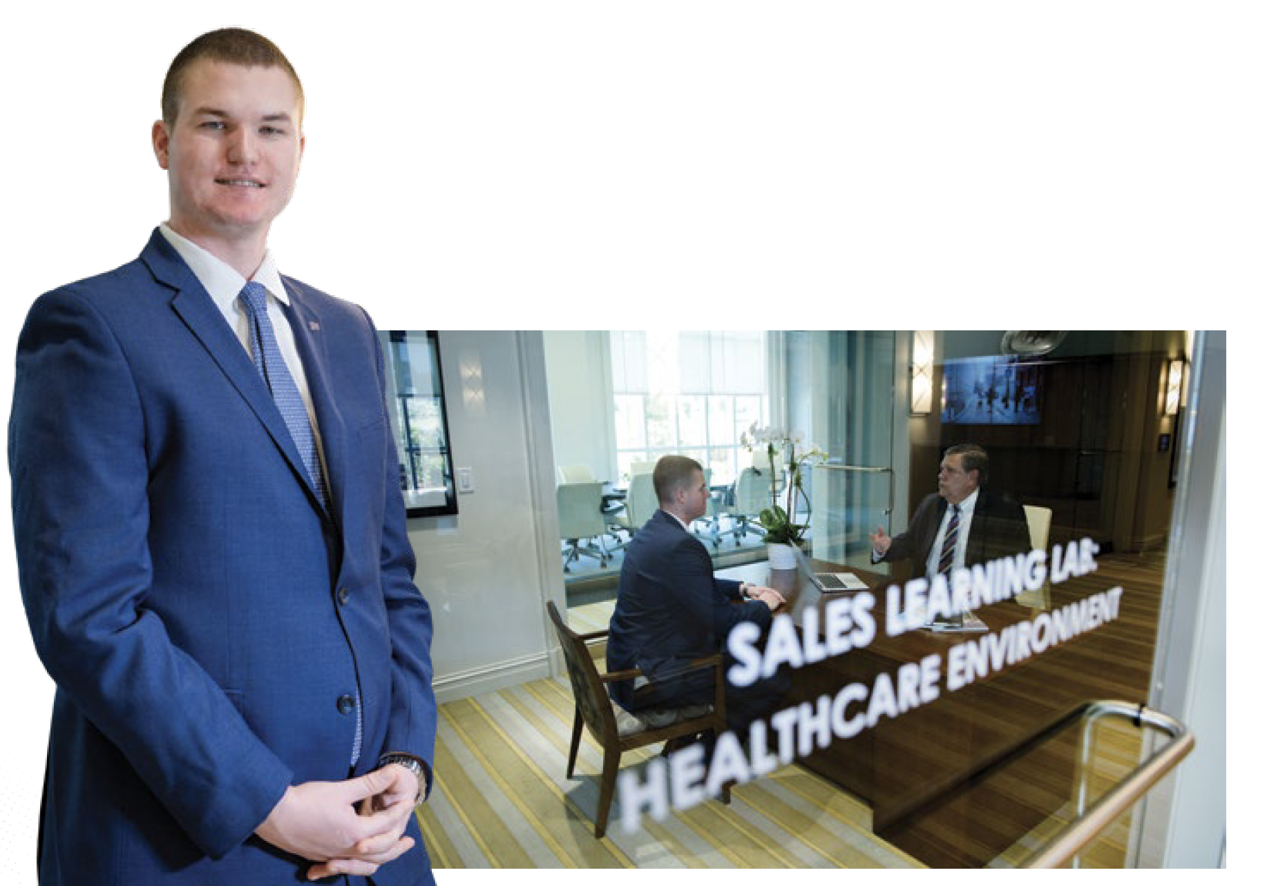 And the Harris Professional Sales Center is filled with students practicing to sell everything from their own ideas and abilities to a company’s product inside of environments that look like a financial firm, Silicon Valley startup and a health care setting.