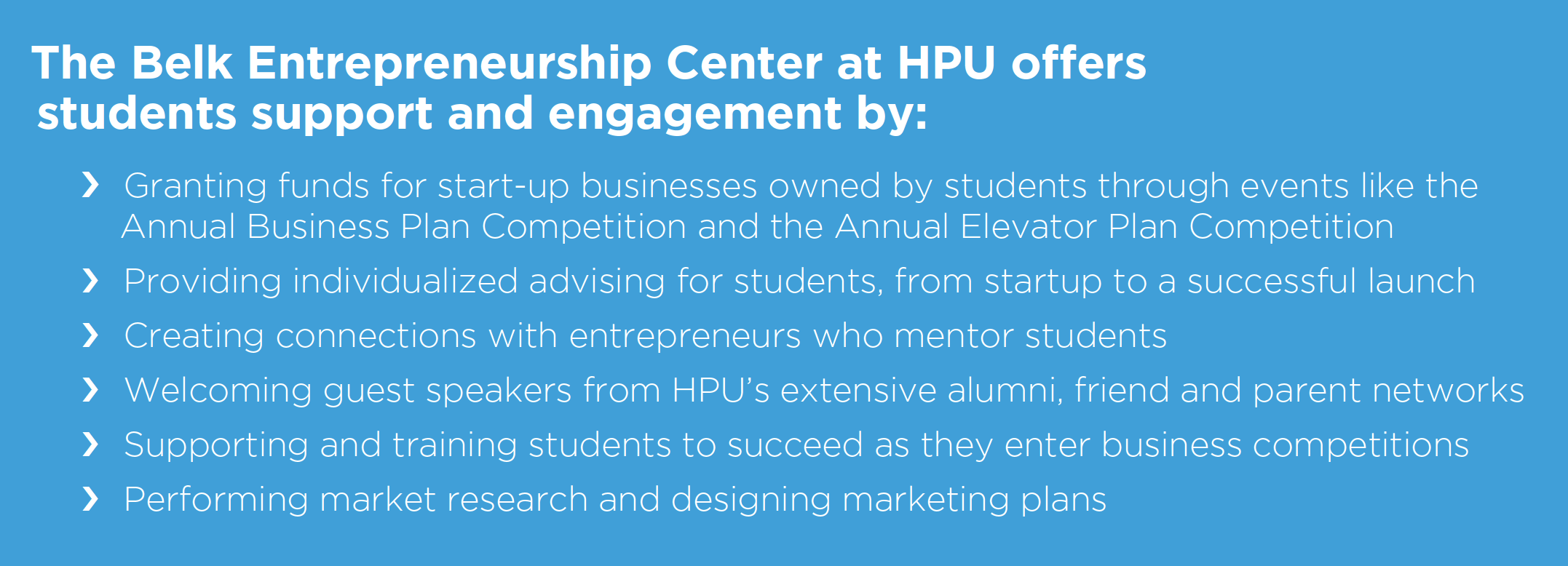 The entrepreneurial spirit is alive and thriving at HPU. Through annual Business Plan Competitions, academic programs and experiential learning opportunities that inspire innovation, HPU graduates job creators, not job takers.