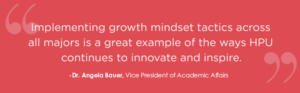 Implementing growth mindset tactics across all majors — which effectively addresses the emotional components of learning and encourages ALL students to persist and succeed — is a great example of the way HPU continues to innovate and inspire. In so doing, every student has the opportunity to embrace challenge, persist in the face of difficulty and ultimately realize their intellectual potential.