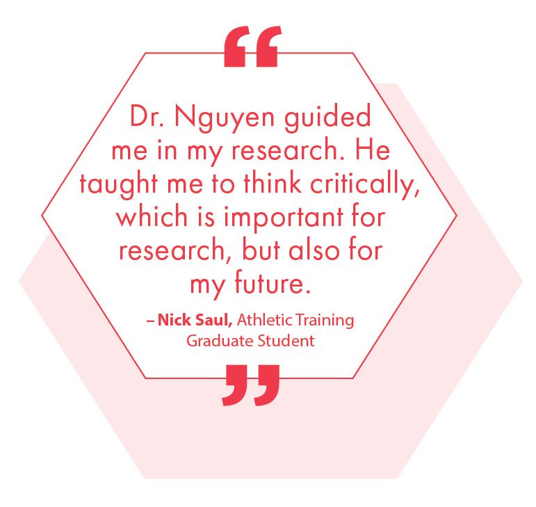 Saul wanted to pursue his interest in preventing injuries. That’s how he met Dr. Yum Nguyen, associate professor of athletic training.