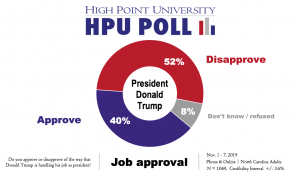 HIGH POINT, N.C., Nov. 12, 2019 – A new High Point University Poll finds that North Carolinians give President Donald Trump a job approval rating of 40%, while 52% of North Carolina residents disapprove of the job Trump is doing as president.