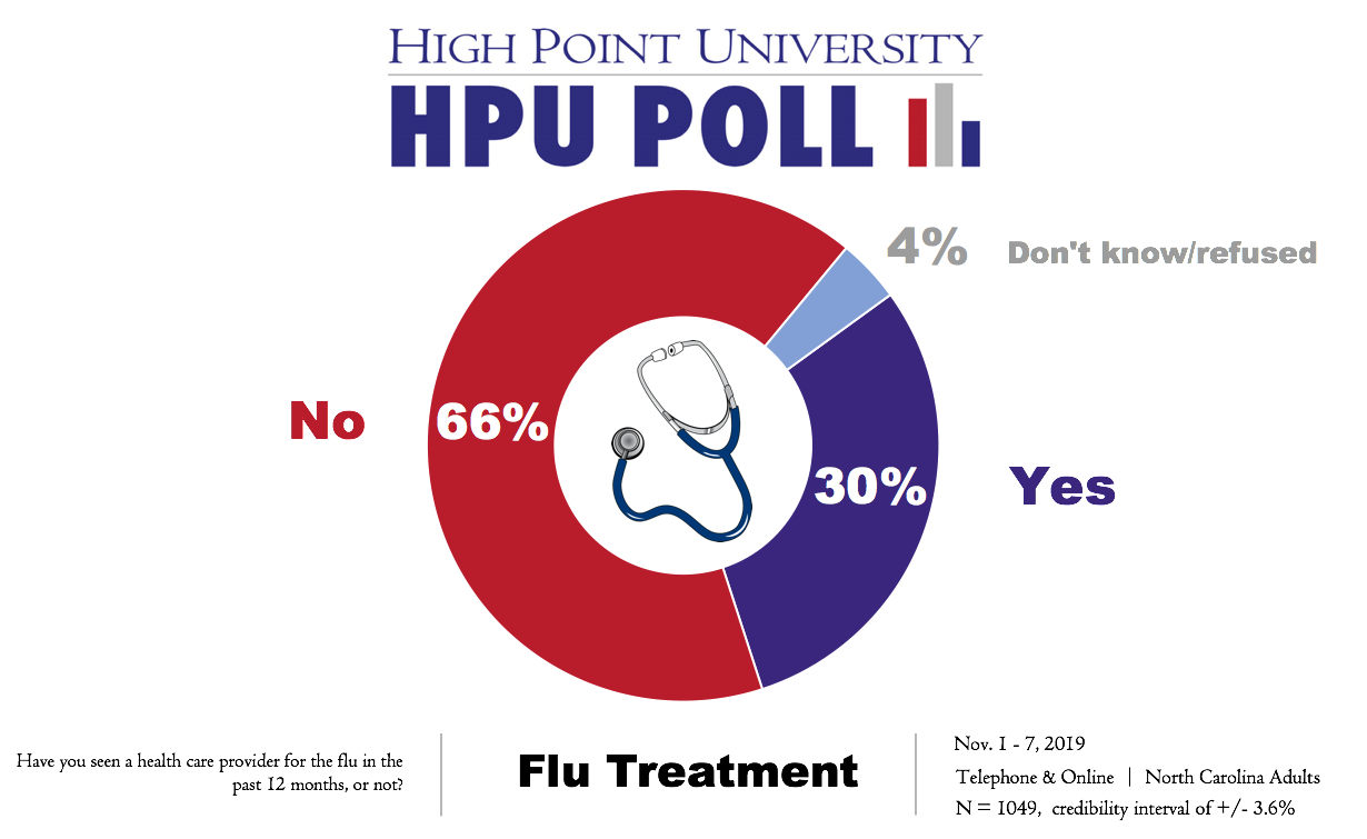The HPU Poll finds two-thirds (66%) of North Carolinians said they have not seen a health care provider for the flu in the past 12 months. This is close to the 70% of North Carolina residents who said the same thing in February 2019.