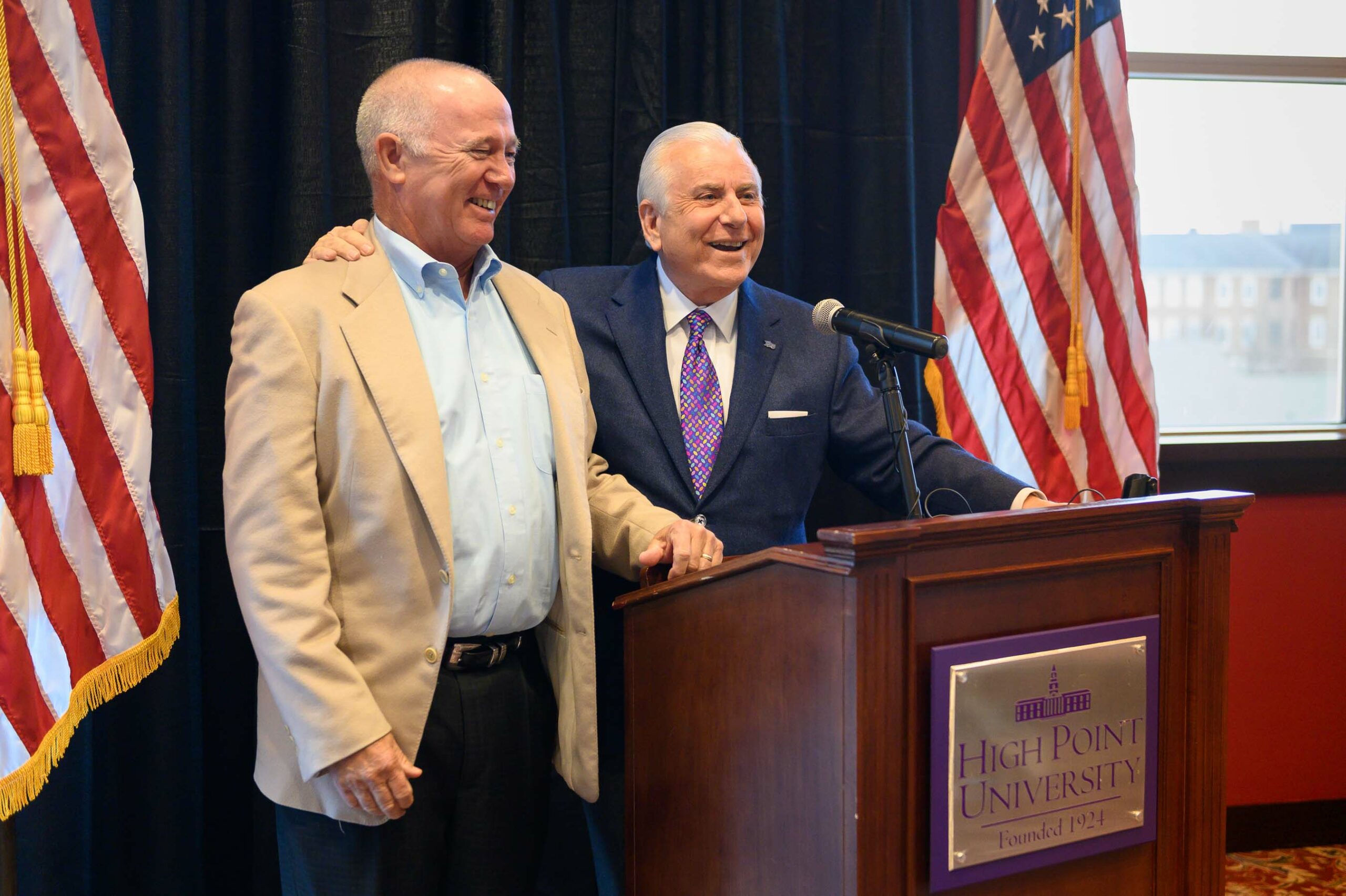 High Point University President Nido Qubein (right) and David Congdon (left), president of the Earl and Kathryn Congdon Family Foundation, announced today a combined $2.5 million gift to support the Carl Chavis Memorial YMCA.