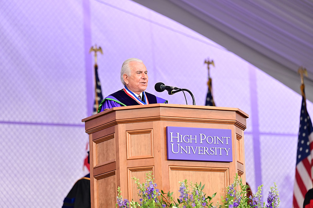 Today, High Point University honored all graduates from the Class of 2020, as well as master’s and doctoral students from the Class of 2021. A second ceremony for Class of 2021 undergraduates will be held at 10 a.m. on Saturday.