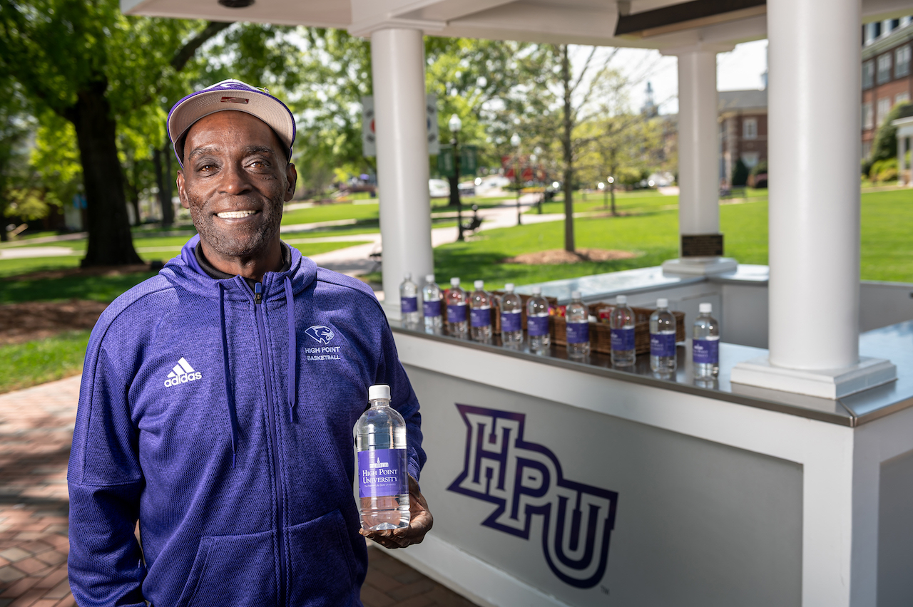 Quick is a U.S. Army veteran from High Point, North Carolina, and began working at HPU in 2013. Most students know Quick from the kiosk by the Stout School of Education, where he gives out snacks and drinks to students on their way to class. He also works with HPU athletes in the Fuel Zones, weight rooms used by 500 students a day.