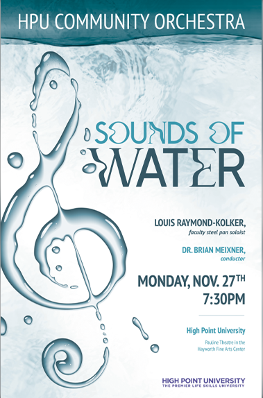 HPU’s Community Orchestra, under Meixner’s direction, will present “Sounds of Water” on Nov. 27 at 7:30 p.m. at Pauline Theatre. For centuries, composers have been writing music that explores the properties of water and its connection to sound. This performance includes two of the finest examples–Bedřich Smetana’s “The Moldau” and “Mississippi River Suite” by American composer Florence Price. Featured on the program is HPU Instructor of Percussion Louis Raymond-Kolker, as steel pan soloist on his own composition, “Summer Springs.” Also featured is the winner of 2023-24 HPU Student Concerto Competition.