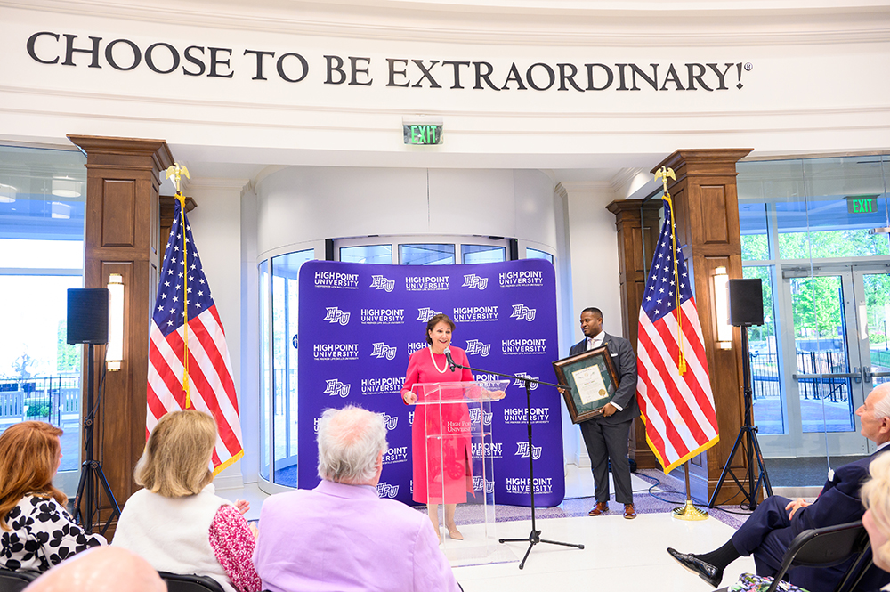 “She has always been committed to HPU, and as the First Lady of High Point University, she is an ambassador for and also a shining star of this university,” said Dr. Daniel Erb, HPU’s provost. “Mrs. Qubein has provided years of service and commitment to High Point University and its students.”