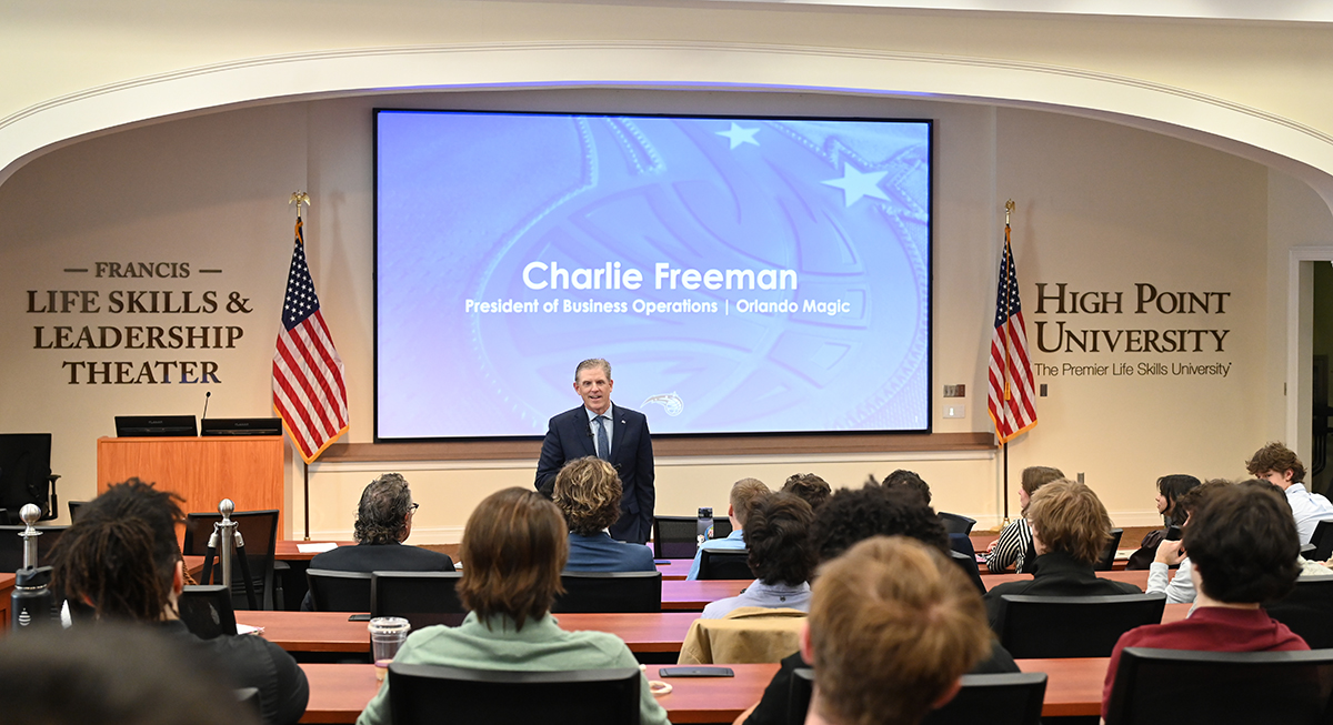 HIGH POINT, N.C., April 10, 2024 – Charlie Freeman, president of business operations for the Orlando Magic and High Point University’s Sports Business Executive in Residence, recently returned to campus to mentor students on ways to be successful in their careers.