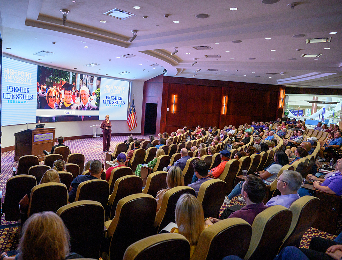 Dee Ann Turner, High Point University’s Talent Acquisition Expert in Residence and former Chick-fil-A vice president for talent and sustainability, spoke to parents at Congdon Hall’s Callicutt Life Skills Theater as part of HPU’s Fall Family Weekend.