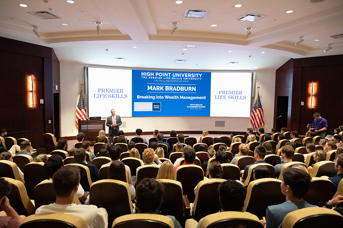 HIGH POINT, N.C., Sept. 27, 2024 – Mark Bradburn, the founder and co-managing financial advisor of The Bradburn Group at Morgan Stanley in New York City, recently visited campus to mentor students as HPU’s Wealth Management Innovator in Residence.