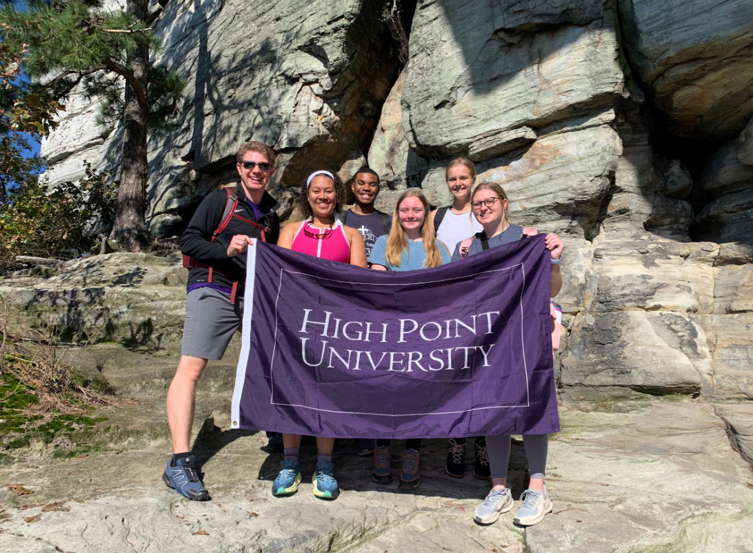 High Point University students from differing majors recently took part in the Fall Pilgrimage, a five-day journey to help deepen their faith and explore how faith communities can make an impact. Pictured from left are Bradley Taylor, senior director for campus engagement, and Rev. Andria Williamson, associate chaplain and director of Chapel Programs, with students Benjamin Carver, Cassidy Brake, Emily Higgins and Haley Hedrick.