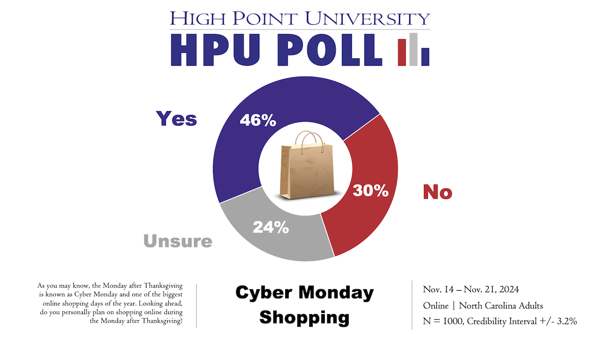 HIGH POINT, N.C., Nov. 27, 2024 – A recent High Point University Poll found more North Carolinians plan to shop on Cyber Monday than on Black Friday.