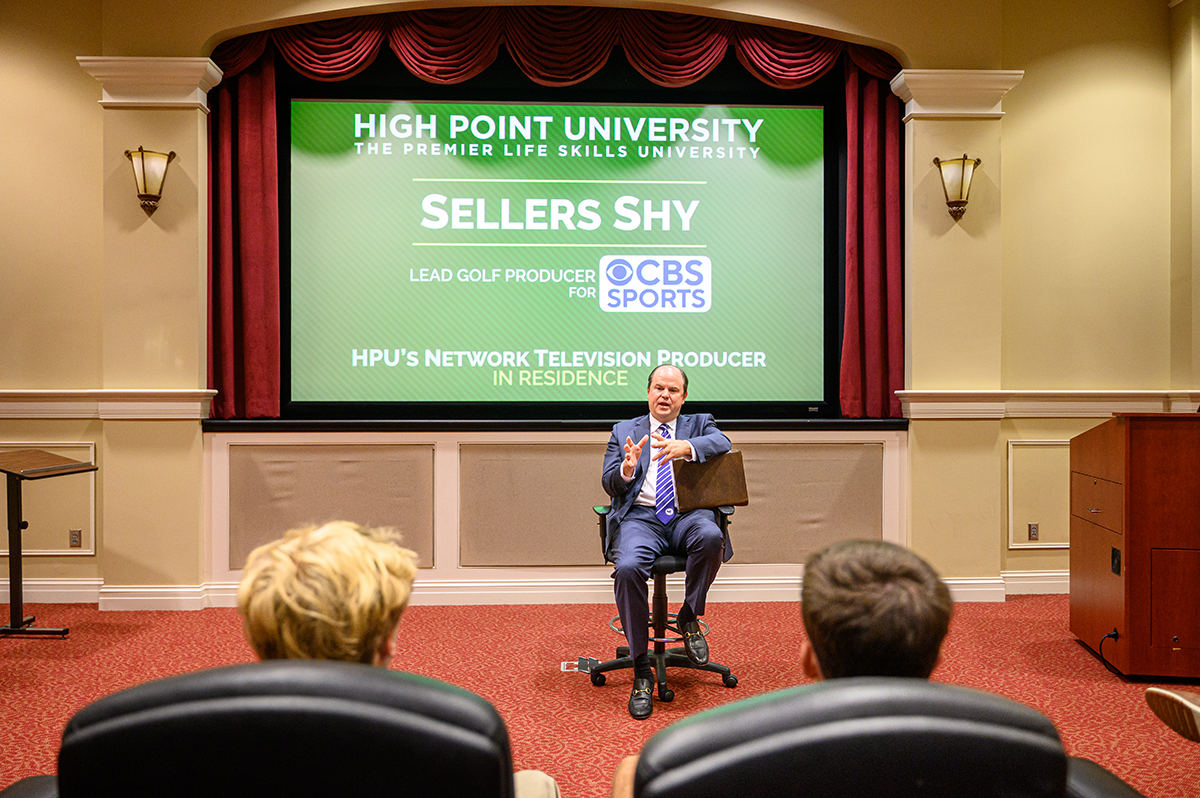 CBS Sports’ Lead Golf Producer Sellers Shy, who also is High Point University’s Network Television Producer in Residence, answered students’ questions about working an externship at the PGA’s Masters Tournament.