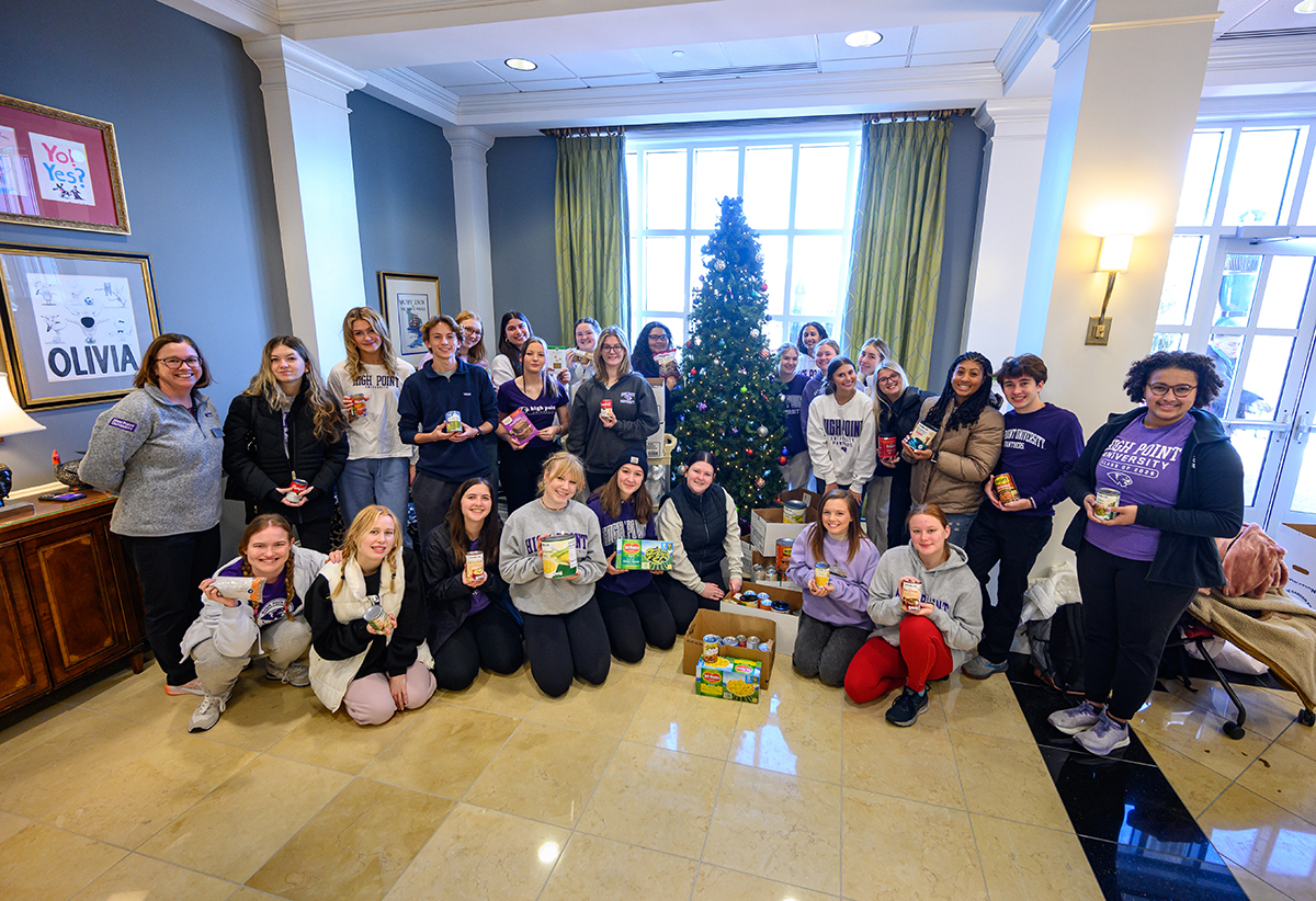 HIGH POINT, N.C., Dec. 11, 2024 – High Point University’s freshman Education Fellows recently hosted a food drive after completing a Hunger in America class. The food drive was part of their semester-long initiative to address food insecurity in the Piedmont Triad.
