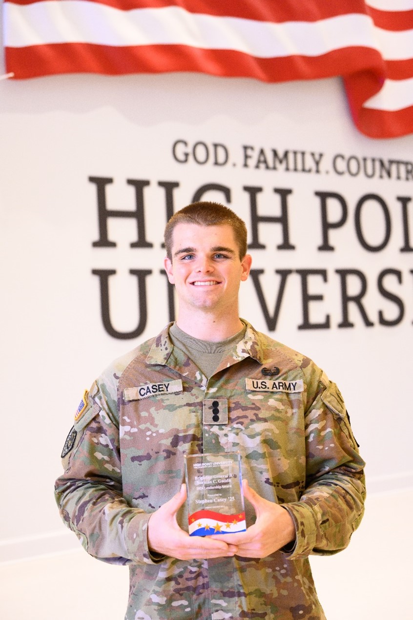 HIGH POINT, N.C., Jan. 10, 2025 – High Point University senior Stephen H. Casey Jr. was awarded the Brigadier General Norman C. Gaddis Leadership Award during HPU’s 14th Annual Veterans Day Celebration on Nov. 8, 2024.