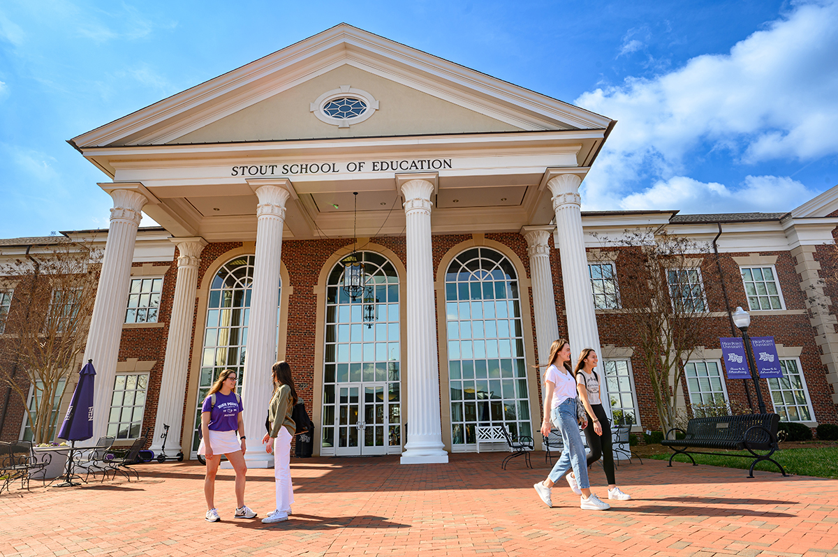 High Point University’s Stout School of Education earned a 100% pass rate on the Educative Teacher Performance Assessment (edTPA) for a fourth consecutive year. Education students walk outside the Stout School of Education.