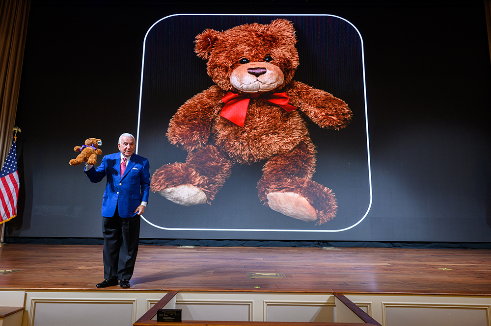 Qubein shared stories from more than 15 years of this tradition of how giving a teddy bear helped a student reunite with a homeless brother. Another student gave her teddy bear to a nurse at the Mayo Clinic who had cared for her grandfather in his last days as he battled cancer. That simple act of kindness became the Mayo Clinic’s symbol of giving.