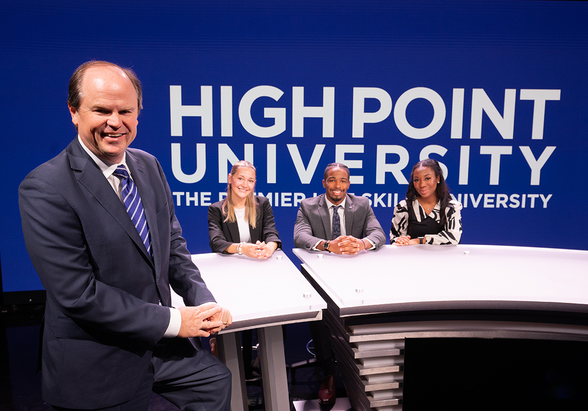 Sellers Shy, CBS Sports’ lead golf producer who serves as High Point University’s Network Television Producer in Residence, worked with students in the TV studio at the Nido Qubein School of Communication.