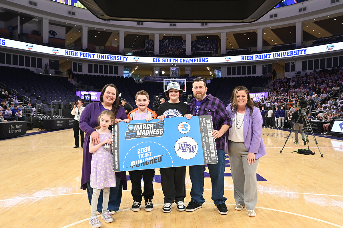 HIGH POINT, N.C., March 17, 2026 – High Point University surprised a local family made up of HPU superfans with an all-expenses-paid trip to watch the Panthers play in the first round of the NCAA Tournament in Portland, Oregon.