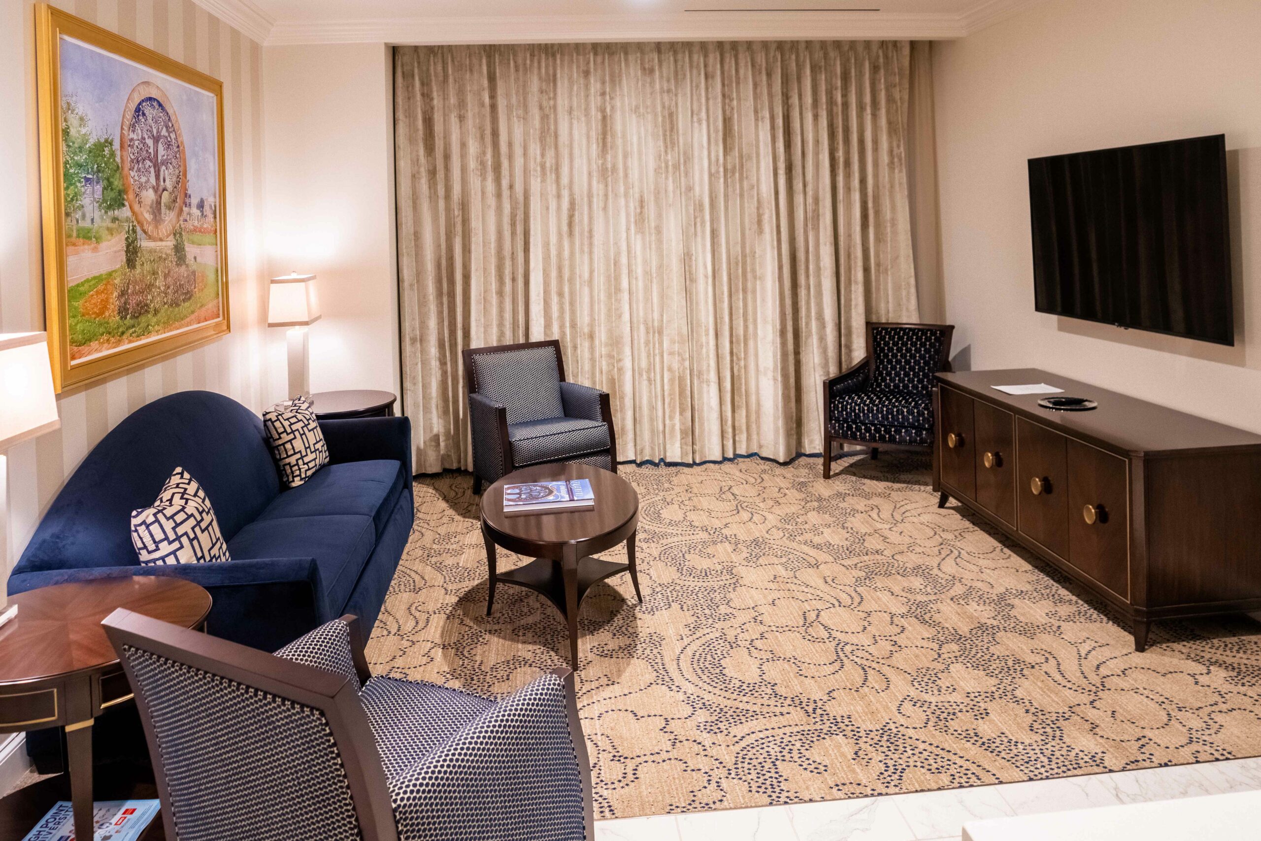 At over 780 square feet, the generously sized Premier Executive Suite offers an elegant and stylish space, adding a touch of luxury while making you feel right at home. Suites feature a private bedroom with king-size bed, a large living room with a sleeper sofa, and spa-inspired finishes in the marble bathroom and additional half bath.
