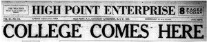 High Point was a fast growing town at the time of the founding of High Point College. The great depression was still years away and the town was heavily invested in the manufacture of furniture and textiles. City leaders felt that a major college was a good addition and Methodist leaders looking to place the new college looked in other communities as well, Winston Salem and Greensboro were both lobbying to land the school. High Point wanted it more and as city leaders waited to meet with Methodist leaders, school children lined the road as they came to town via Greensboro Rd. and onto what is now Montlieu Ave. After the decision was made, the High Point Enterprise declared a victory!