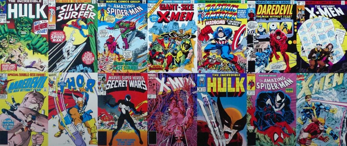 Below are some of his most notable creations and co-creations, many of whom have gone on to become hugely recognizable properties outside of their comic book industry origins. Click on the original art to find a list of graphic novels the library has for that character. Click on the live action image to see a list of DVDs and Blu-Rays featuring them.