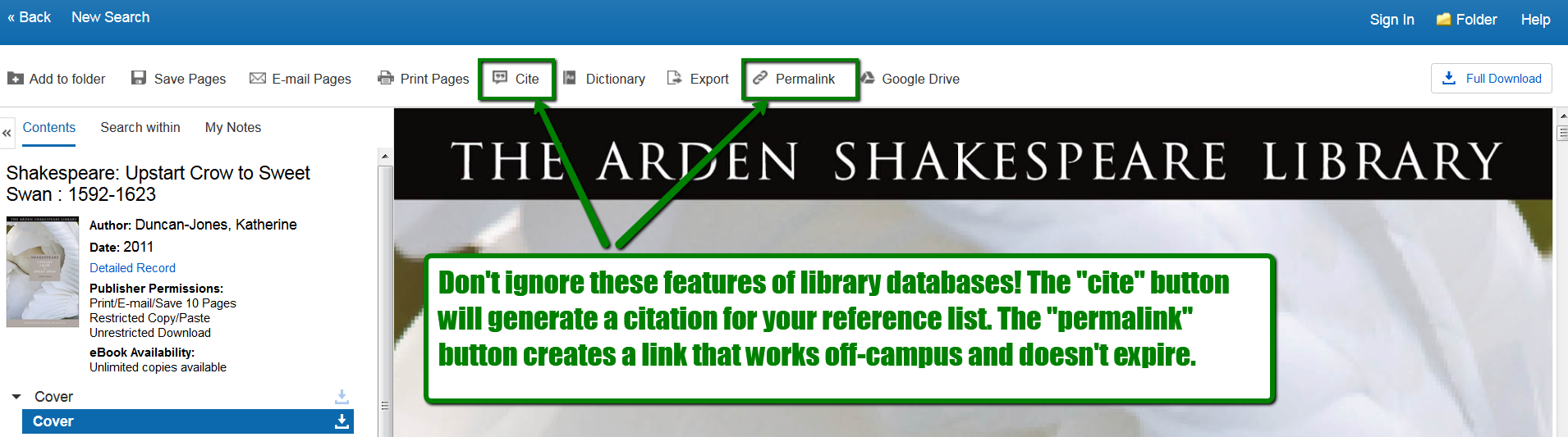 3. Save yourself time by using the “automatic citation generators” in library databases, and by saving “permalinks.”