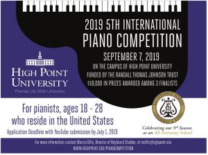 - The annual High Point University Piano Competition, funded by the Randall Thomas Johnson Trust, will be held on the campus of High Point University in High Point, North Carolina. The final round of the piano competition and the awards ceremony will take place on a Saturday in September each year.