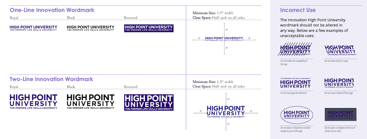 The High Point University wordmark or name cannot be adjusted or used in new logo/ wordmark iterations.