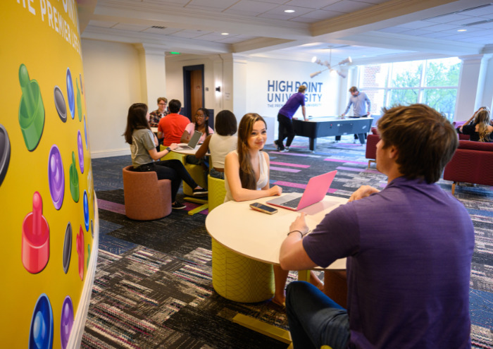 The $95 million Panther Commons is located in the heart of campus at the corner of Panther Drive and Farris Avenue near the new Nido and Mariana Qubein Arena and Conference Center. Panther Commons opened its doors to students in August 2023.