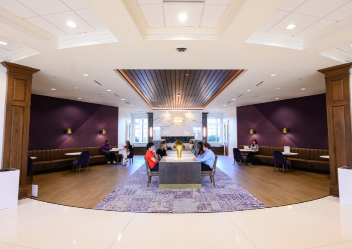 - Study spaces available on each floor in the center of the building for students to meet and study