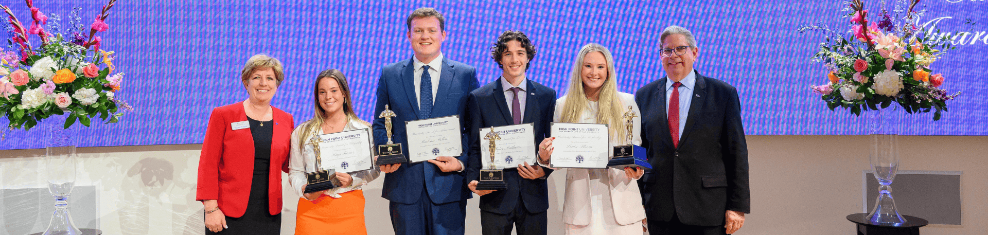 University Awards for Achievement, Citizenship, Leadership and Service are awarded by the University to seniors in the graduating class based on excellence in their respective category. Students are nominated by members of the faculty and staff and are selected by a committee appointed by the Vice President of Student Life. We understand all four characteristics may be exhibited in those selected while one emerges to define the individual’s legacy of impact during their time at High Point University. The awards are underwritten by an endowment fund established in honor of William Swanson and Helen Faris Wray.